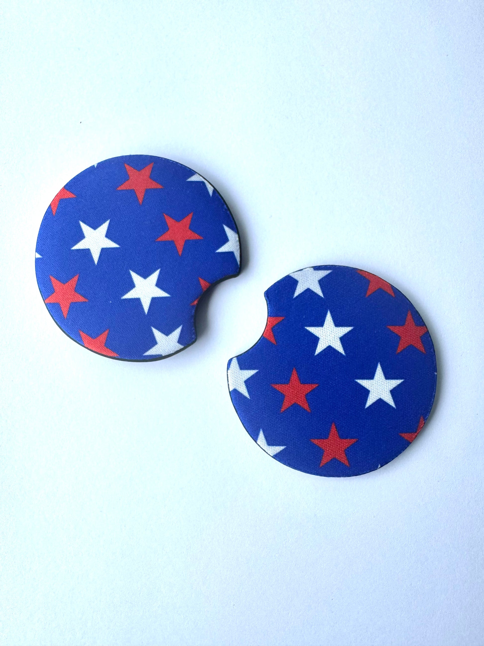 These unique car coasters feature a patriotic design in red, white, and blue. The coasters are designed to fit most car cup holders and provide a functional and stylish way to protect your car's interior from spills and stains. Made of high-quality materials, these coasters are durable and easy to clean. Elevate your car's interior with these Red White & Blue Car Coasters.